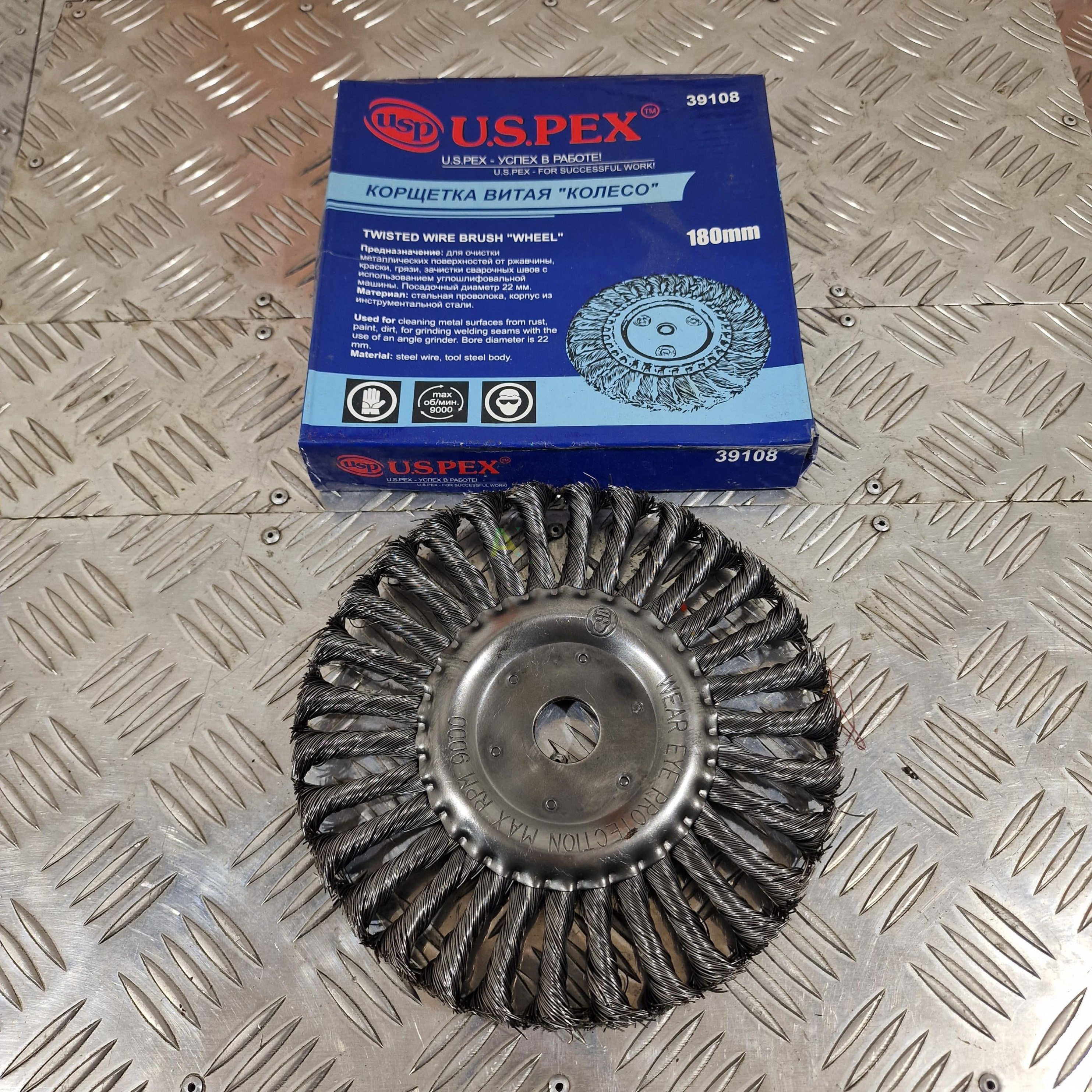 Корщётка витая «Колесо» (180 мм), артикул 39108 — оснастка для угловых шлифовальных машин (УШМ).