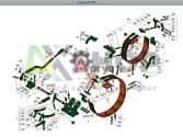 Рычаг остановочного тормоза левый 8.23.104 является частью сборочной единицы Тормоз остановочный левый в сборе 6.23.011.  Соединяется с помощью пальца рычага остановочного тормоза 8.23.103 с короткой тягой остановочного тормоза 8.23.102.